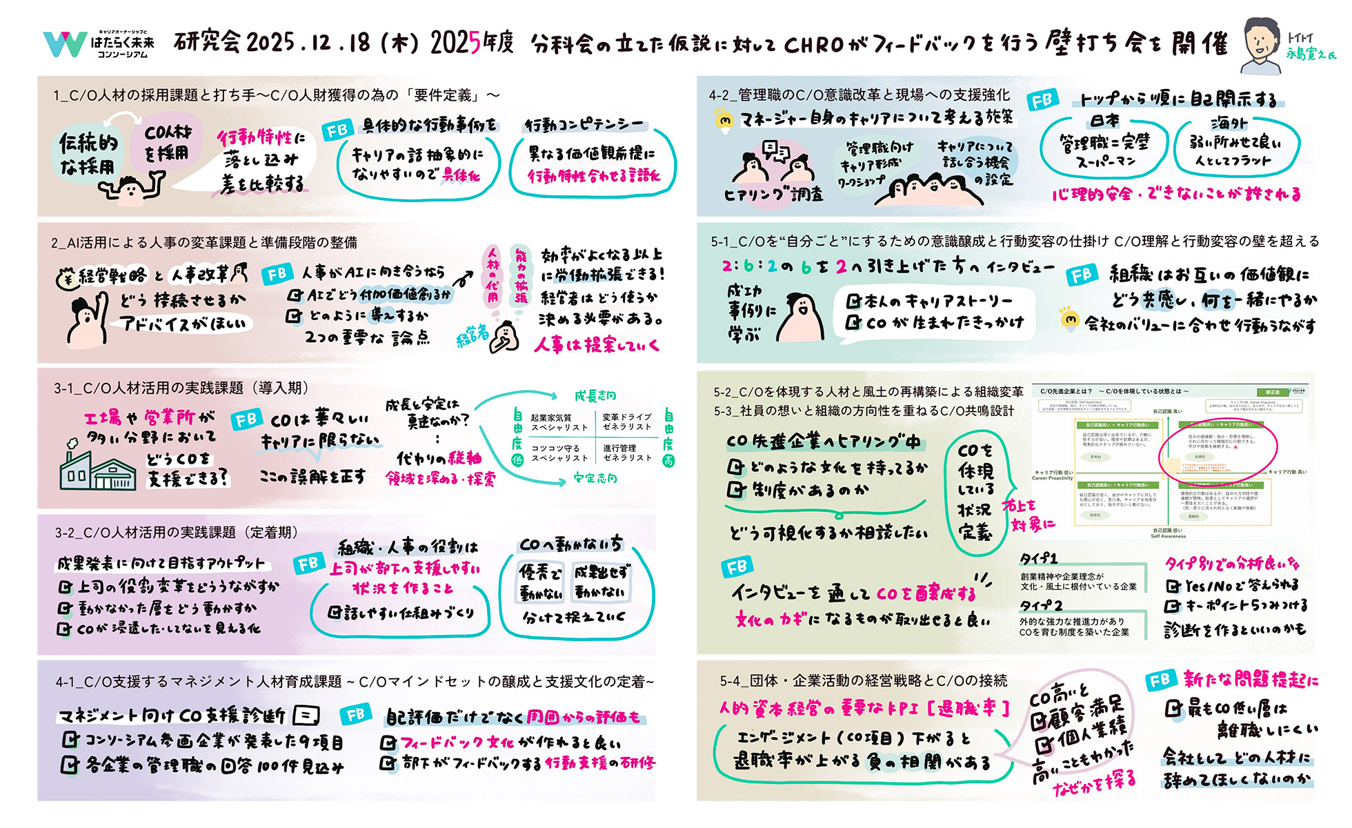 2025年12月18日、日本を代表する41社が集まり「キャリアオーナーシップとはたらく未来コンソーシアム 第5期」の特別セッションとなる「分科会が立てた仮説に対する有識者のフィードバックセッション」を開催しました。