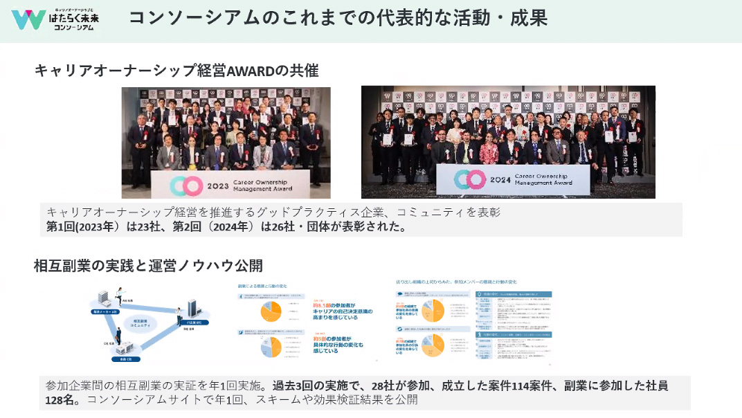 また、私たちは成果として「はたらく未来白書」をこれまでに3回出したほか、実際にキャリアオーナーシップを推進する打ち手100(現在は107)を公開しています。その他にも、有識者や企業様に対してインタビューを行っており、全てホームページへ掲載しております。