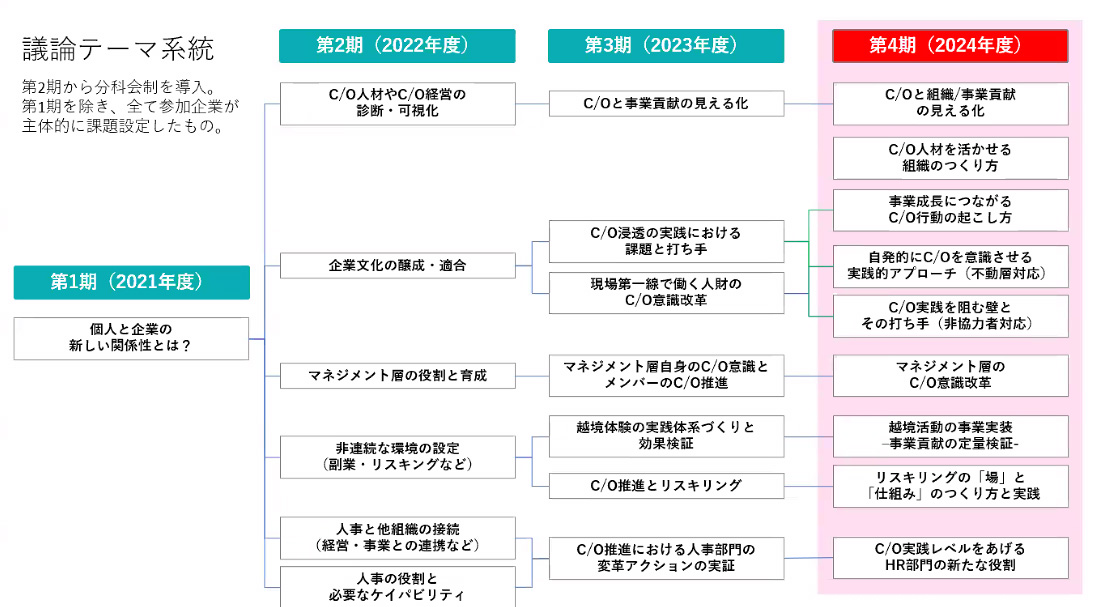 自分たちでキャリアを作っていこうねと。キャリアのオーナーシップを持ちながら働いていくという状況ではないかと問題意識を掲げながらスタートして、0期から1期、そして1期、2期、3期でやってきまして。で、今回過去最大の規模である48社が集まって、この1年間取り組んでまいりました。