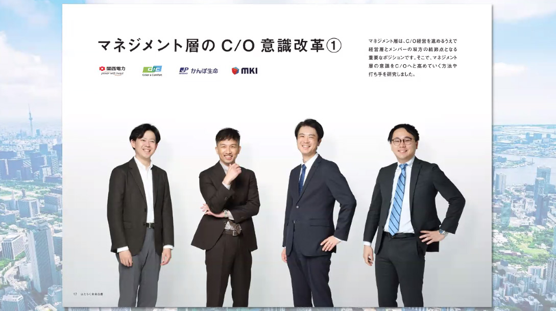 かんぽ生命の今井です。私どもは、関西電力さん、dicさん、MKIさん、かんぽ生命の4社でキャリアオーナーシップ人材を活用しまして、企業の中長期的な成長を目指して個人的資本を最大化するキャリアオーナーシップ経営に出して取り組んでまいりました。キャリアオーナーシップ意識改革は、ひとつ前のグループと同じく、私たちも非常に難しいと感じた課題でした。