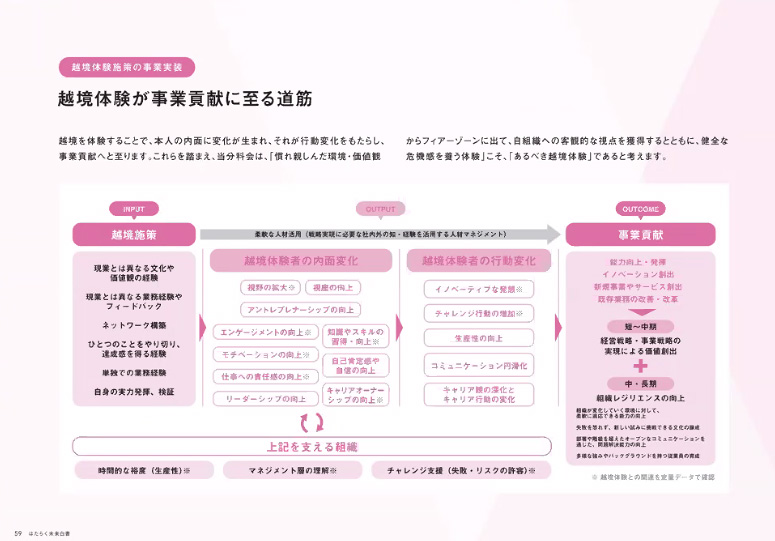 このように、越境体験を通じた個人・組織の成長が、最終的に事業への具体的な貢献につながっていることがデータに基づいて示されています。