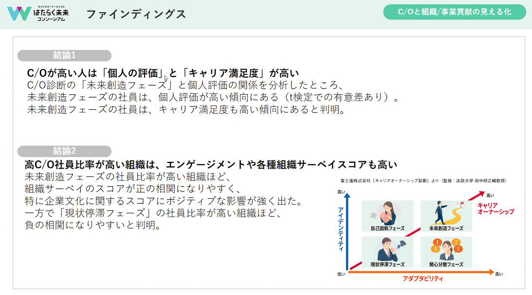 今回、6社がそれぞれのデータを持ち寄って掛け合わせたことで、初めて事業貢献とキャリアオーナーシップの関係性が明らかになったものであり、まさにコンソーシアムの取り組みが生み出した大きな成果と言えるでしょう。