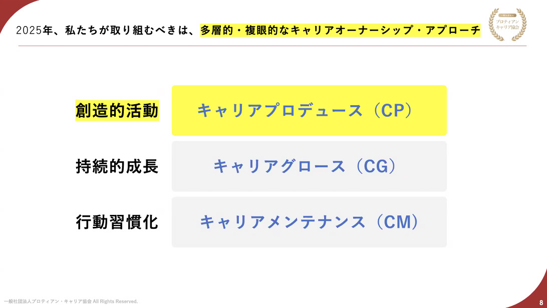ですので、キャリアオーナーシップアプローチは今後、多層的かつ複層的に展開していくことになると考えています。特に、以下の3つが入ってくると思います。