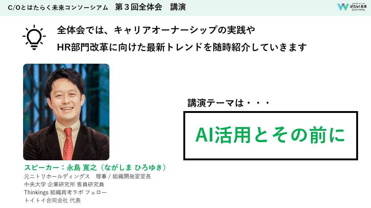 このコンソーシアムでも、AIに特化した分科会がありますよね。AI抜きのキャリアオーナーシップはもうありえない。いかに効果的に、変化を促すためにAIを活用していくのか。これが大事です。