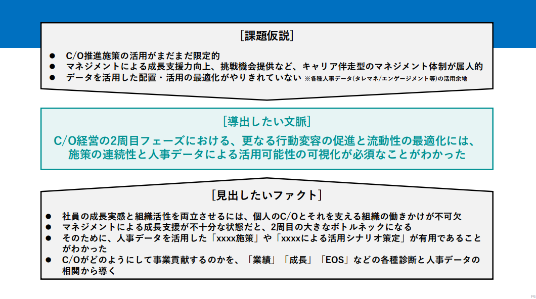 進捗でいうとすごく進んでいると思います。ですから、我々がまだ着手できていなかった伊藤邦雄先生の人的資本経営と、我々がこの5年間やってきたキャリアオーナーシップ経営にはどのような関係性にあるのか。ここまで切り込めるとよいですね。