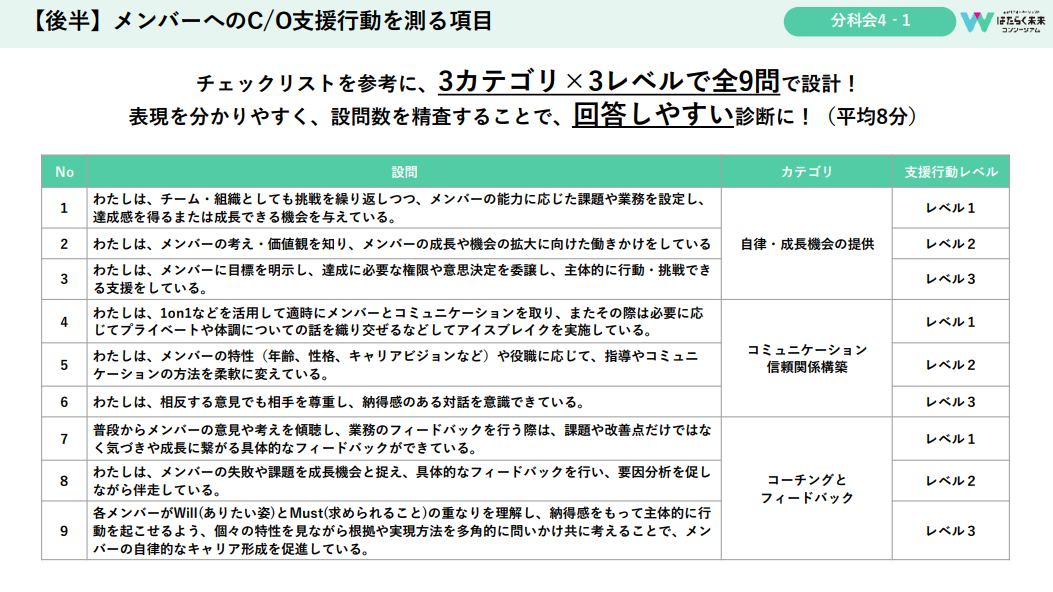 現在はデータを回収、分析していますので、これから相関分析や施策への反映案作りを進めていきたいと思っています。自社にどれくらいキャリアオーナーシップ支援ができるマネージャーがいるかを査定できる診断にできるよう、尽力しています。