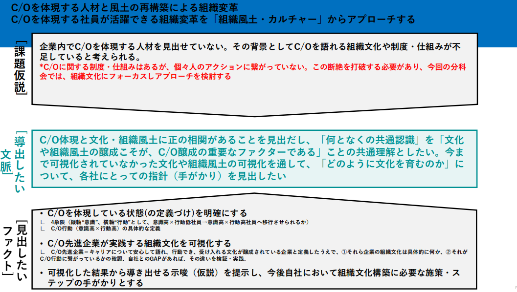 私たちは「キャリアオーナーシップをあの経営層にどうご理解いただくか」を、今回テーマに置いております。「そもそも、キャリアオーナーシップ経営へ投資する意味は何?」という経営層の疑問に答えなくてはいけない。ここにどう立ち向かっていくか、研究を進めています。